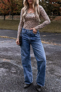 Animal Print Scoop Neck Long Sleeve Bodysuit