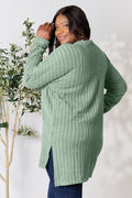 Basic Bae Full Size Ribbed Round Neck Long Sleeve Slit Top
