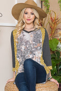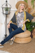 You don't have to go on a safari to have a wild time! Just throw on this fun quirky Celeste Full Size Floral Contrast Raglan Sleeve Top and let the good times roll. This casual top boasts: