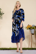Celeste Full Size Paisley Print Lace Ruffled Midi Dress