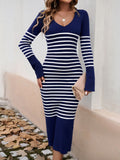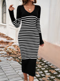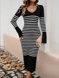 Devine Striped V-Neck Long Sleeve Sweater Dress