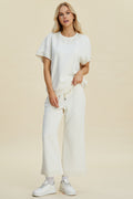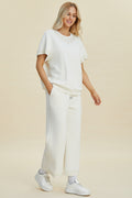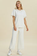 Double Take Full Size Pearl Detail Round Neck Top and Pants Set