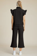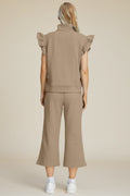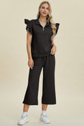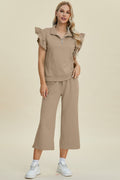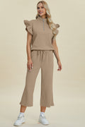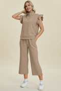 Double Take Full Size Texture Ruffle Short Sleeve Top and Wide Leg Pants Set