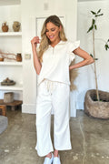 - Stylish Design: Featuring a chic ruffle short sleeve top that flows beautifully, paired with wide-leg pants for a trendy silhouette.