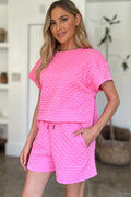 Double Take Full Size Texture T-Shirt and Shorts Set