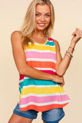 Available in various sizes, this tank top is designed to flatter every figure. Don't miss out on adding this chic and effortless style to your collection. Experience the perfect blend of comfort and fashion with the Haptics Round Neck Striped Knit Tank!