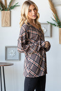 Embrace effortless style with the Heimish Plaid Exposed Seam V-Neck T-Shirt, where comfort meets contemporary fashion. This striking t-shirt features: