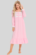 Lace Detail Square Neck Flounce Sleeve Night Dress