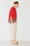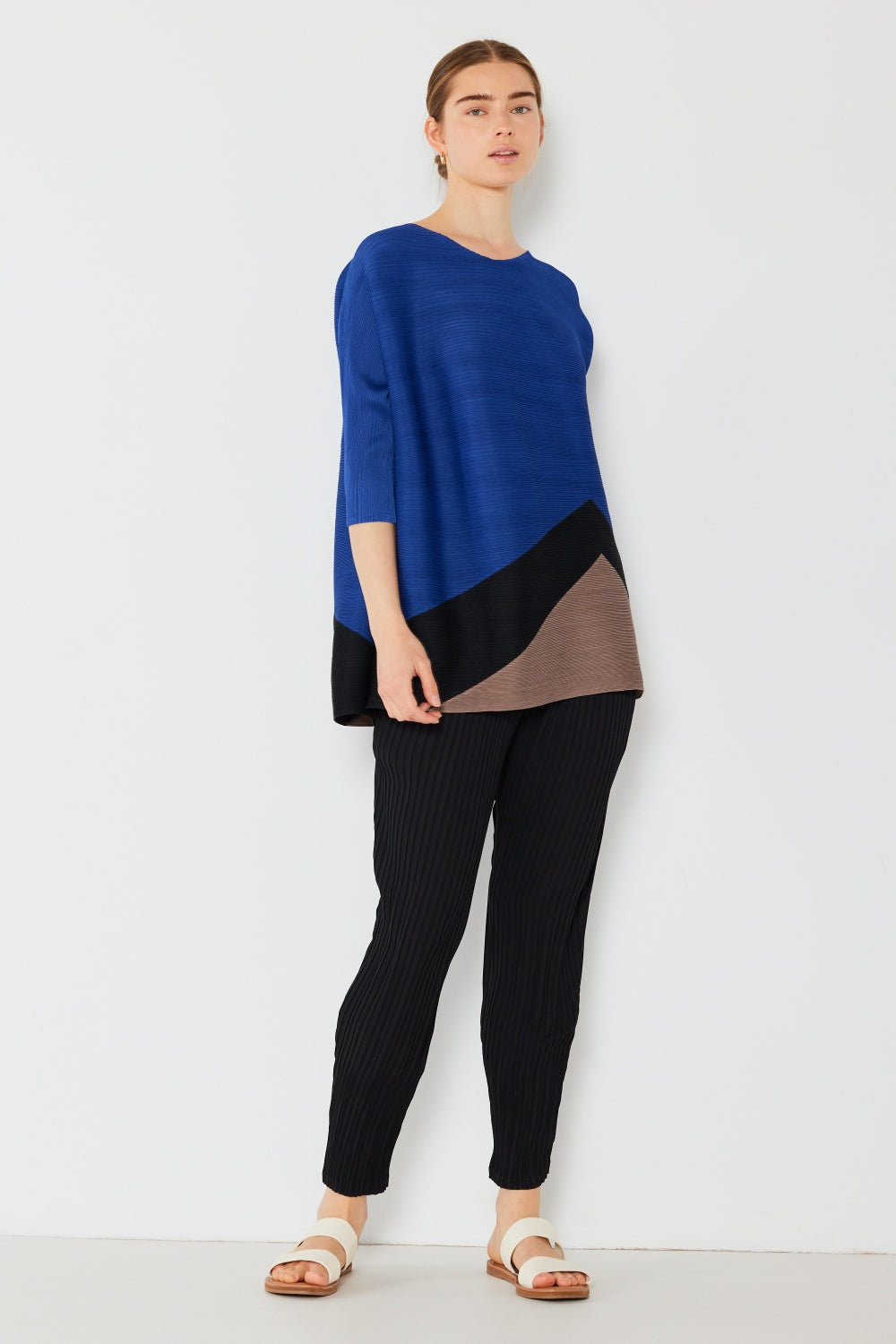 Elevate your wardrobe with the fashion-forward and versatile Pleated Horizontal Rib Color Block Top for a stylish and contemporary ensemble. Don't miss out on this must-have addition to your collection!