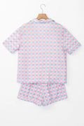 Plaid Collared Neck Short Sleeve Top and Shorts Lounge Set
