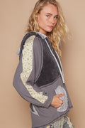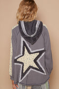 POL Half Zip Up Fleece Mix Back Star Patch Hoodie