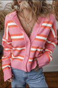 Elevate your wardrobe with our Striped Button Down Long Sleeve Cardigan, the perfect blend of comfort and style! This cardigan is designed to be your go-to layering piece for any occasion.