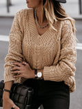 Elevate your wardrobe with our V-Neck Cable-Knit Long Sleeve Sweater! This timeless piece features a classic cable-knit design that effortlessly blends comfort with style.