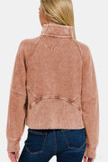 Zenana Acid Washed Half Zip Fleece Sweatshirt